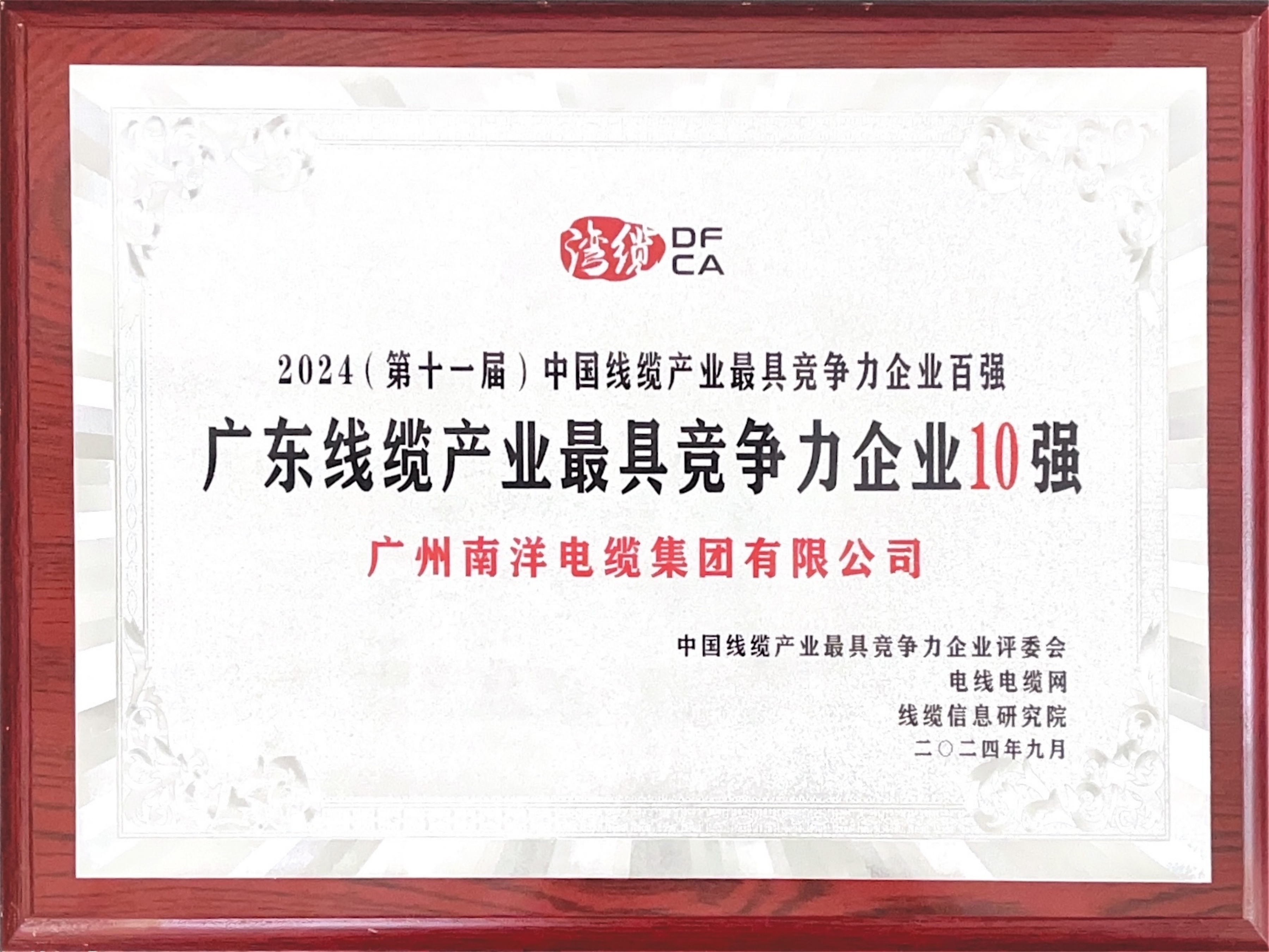 • 2024年度廣東線纜行業(yè)最具競爭力企業(yè)10強(qiáng)第一名